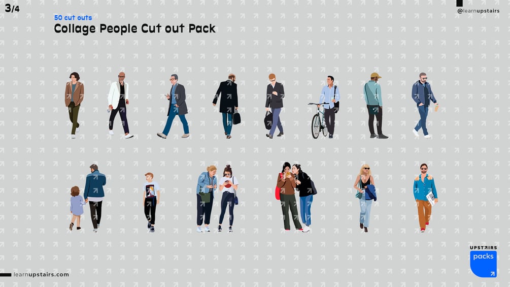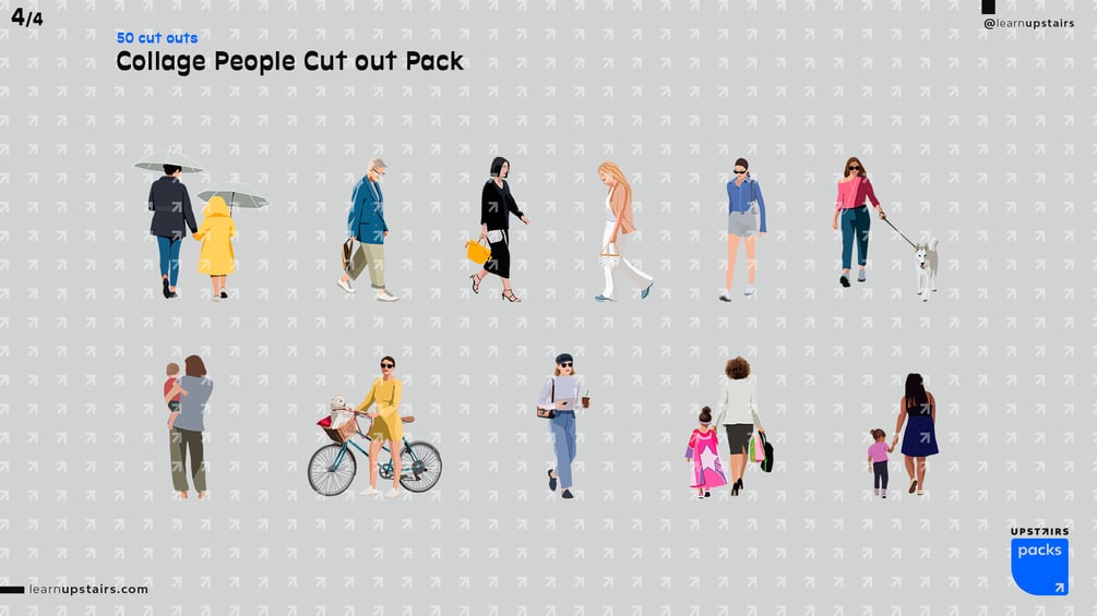 Whether you’re mixing them with realistic renders for a hybrid look or going full collage to express a concept or emotion, these figures are a must-have for any architectural representation library. They help you work faster, stay creative, and elevate your presentations with a more artistic flair.