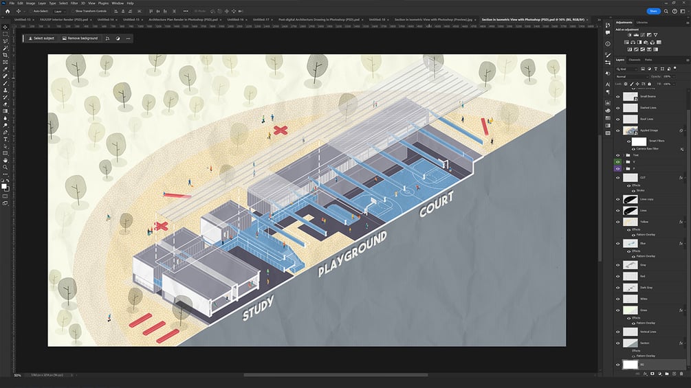Here you'll find all the essential files to follow the Youtube tutorial: Section in Isometric View with Photoshop!