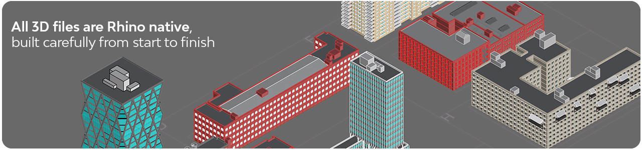 This volume is ideal for high-rise areas, downtown cores, and large urban developments. The buildings help frame projects within a broader city fabric, giving your proposals a clear sense of scale, density, and urban presence.