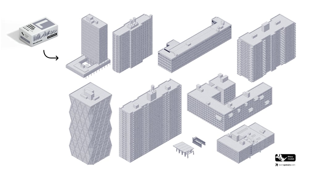 This version allows you to adjust massing, proportions, and views directly in Rhino, and integrate the buildings into renders, studies, and more detailed workflows.